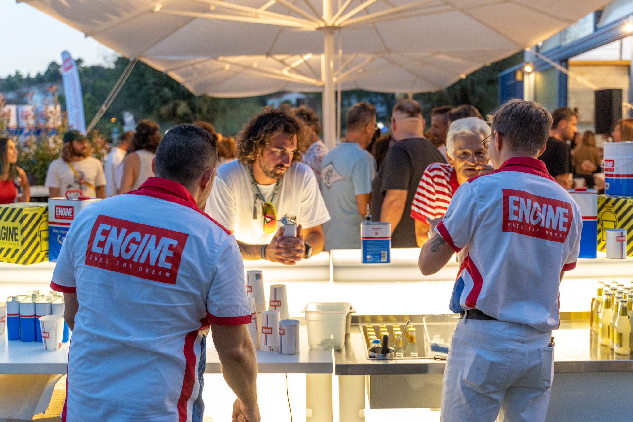 Evento Aziendale di promozione del gin Engine a Numana presso il SEDICIGRADI Numana Bar. Una giornata di festa per promuovere questo gin di nicchia con dj set e distribuzione di gadget.